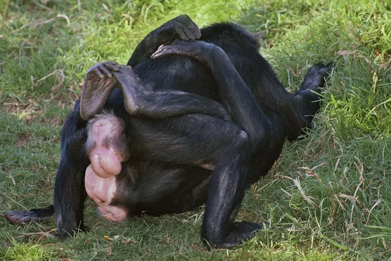 The anatomical disparity between bonobos and humans quite significant: the sexual dimorphy is lesser so compared to chimpanzees males are relatively smaller and females taller, while penises are smaller and clitoris huge, so much so that clitoral penetration has been observed… But sodomy is mostly impossible to them, the most frequent contact being genital-genital rubbing (dry humping or tribadism for lesbians, while it lacks a name with one or two males). Yet male homosexuals are unanimous as to what contact provides the stronger pleasure, by miles: passive sodomy. What can we conclude ?
