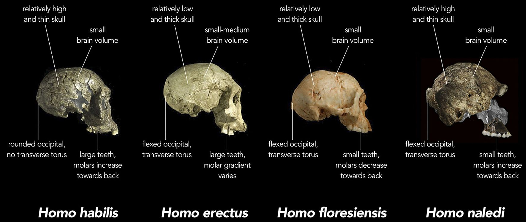Dental and bone morphology indicate either a strong precocity and speed of growth even superior to that of apes… a much, much longer growth period than ours. We could give the example of a morphologically very young crane, but the jaw was well developed (indicating weaning), and the milk teeth showed signs of extensive wear which did not correspond to the estimated age. Problem is tooth wear is very much independent of lifestyle and over whole populations reflects only the passing of time. No amount of chewing, along the whole range of historical human diets, can explain the excessive wearing shown, leading to the invocation of ridiculous uses of teeth as tools